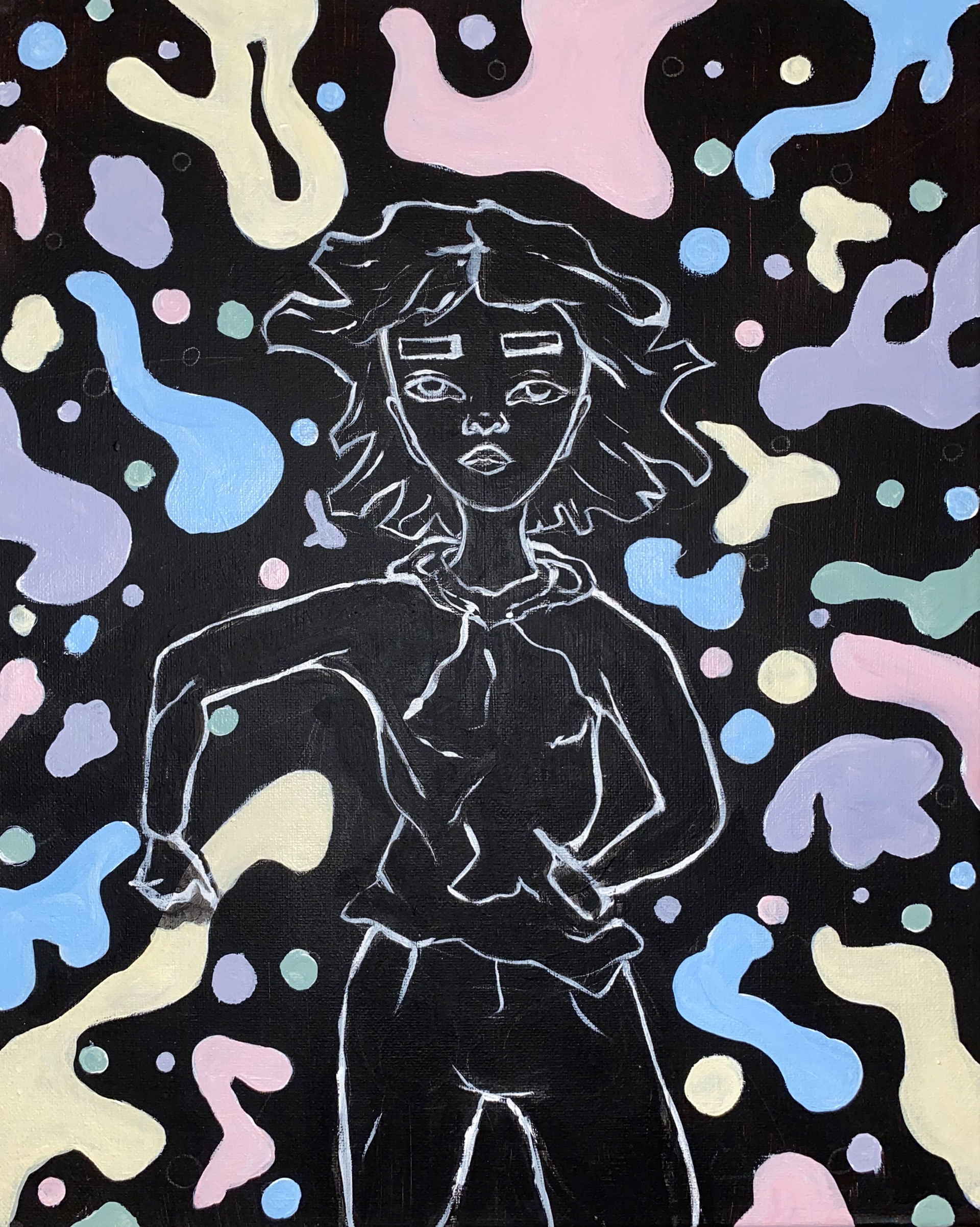 Peinture d'un personnage imaginaire en action